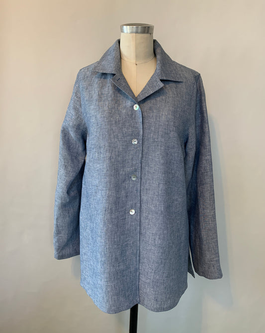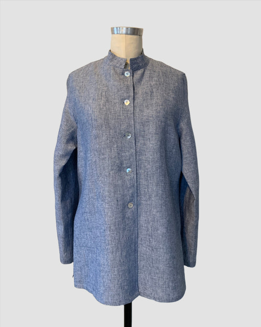 Linen Shirt 3/4 Sleeve (Periwinkle)Mandarin